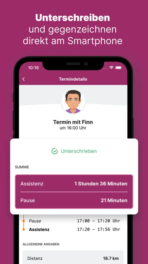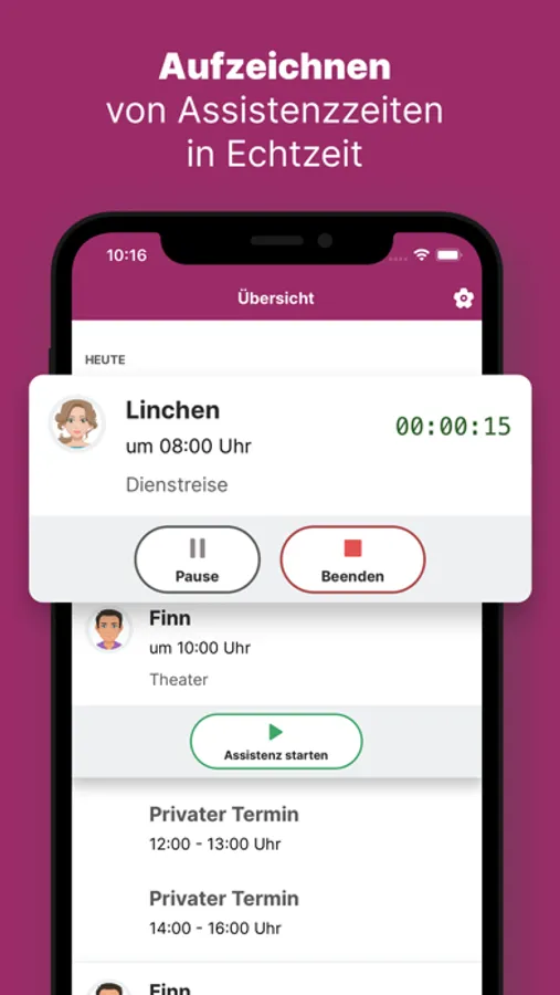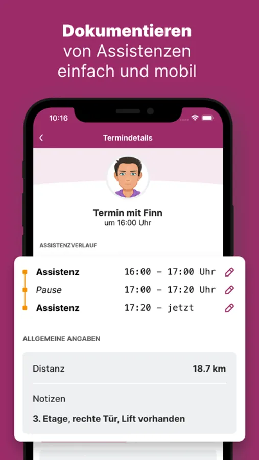 Via the ava app, data relating to the hours of assistance can be recorded and managed easily and on the move by both assistants and clients.