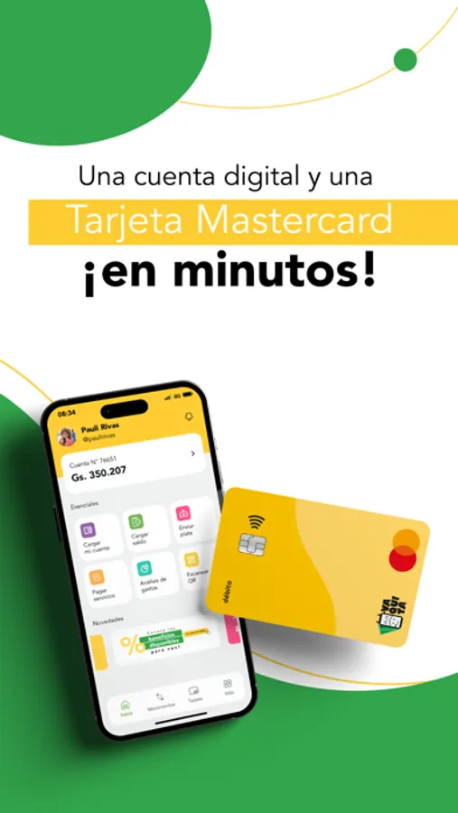 Con Vaquita podés tener una cuenta digital en minutos desde tu celular, solo con tu cédula de identidad. Además, podés pedir la tarjeta Vaquita Mastercard, una tarjeta de débito internacional para hacer compras en internet y en cualquier parte del mundo.