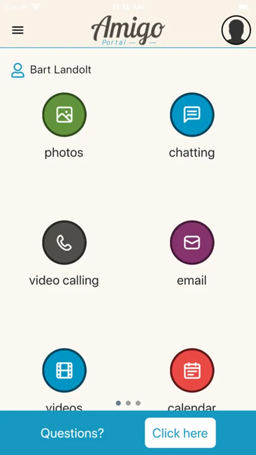 This app makes it very easy to communicate with the user of the Amigo tablet. You can make video calls, share photos, send e-mails messages or chat (only available on the Amigo Connect). Administrators also have access to the tablet calendar and can remotely adjust many settings on the Amigo tablet.