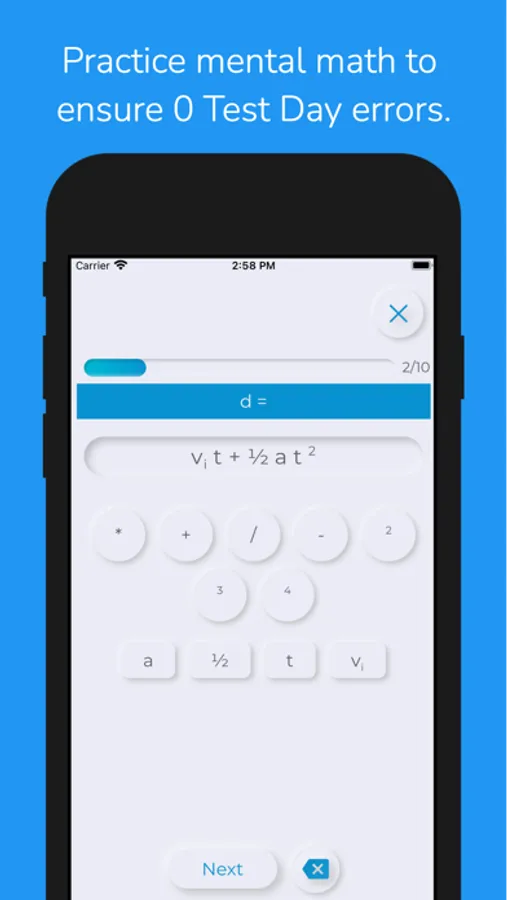 1) Math Practice: Unlimited pure math practice question, so you can practice your mental math without a calculator. These math skills are the same ones you need on the real MCAT: Addition/Subtraction, Multiplication/Division, Exponents, Square Roots, Logs, Scientific Notation, and a touch of Trigonometry.