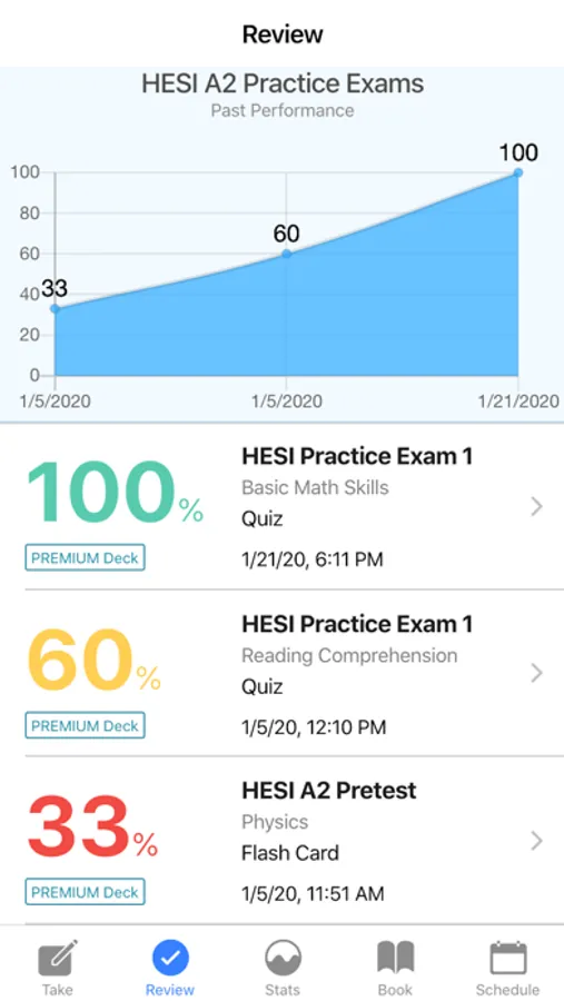 To keep prepping for the HESI exam, upgrade to our Premium account to unlock an additional 1,200 practice questions straight from McGraw-Hill Educations HESI Review and HESI A2 Practice Test books. You can prep with these questions in full exam mode, as individual section quizzes, or as flash cards. We help you organize your study time by generating a custom schedule based on your target test date. In addition to all this, we include McGraw-Hill Education's complete online HESI A2 Review book. You'll have everything you need anywhere, anytime.
