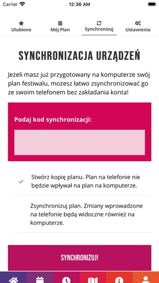 - zsynchronizujesz swój plan festiwalu z innych urządzeń
