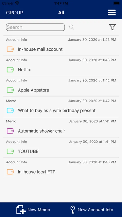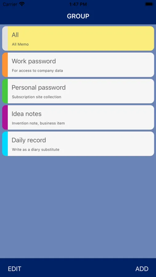 -Each group can be tagged with the desired color, which will also apply to notes or website information in the group.