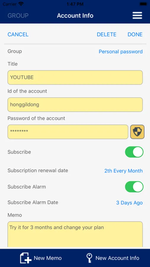 -You can record whether the subscription (automatic payment) or not, you can also record the subscription date.