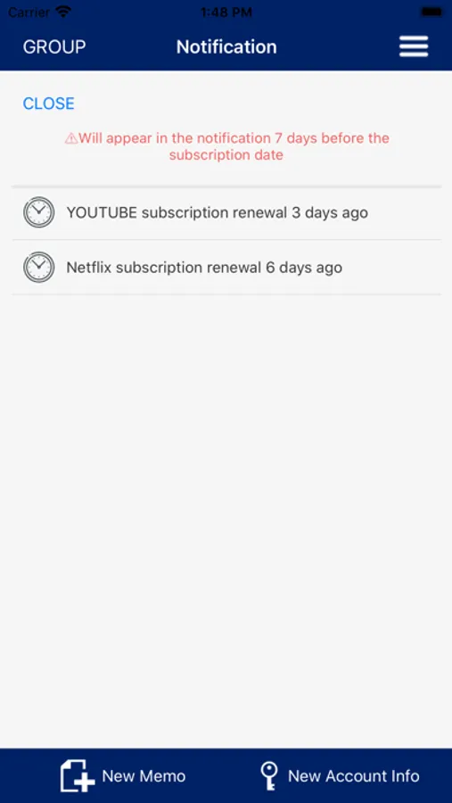-There is a function to notify by push on the date you want the subscription date is imminent.