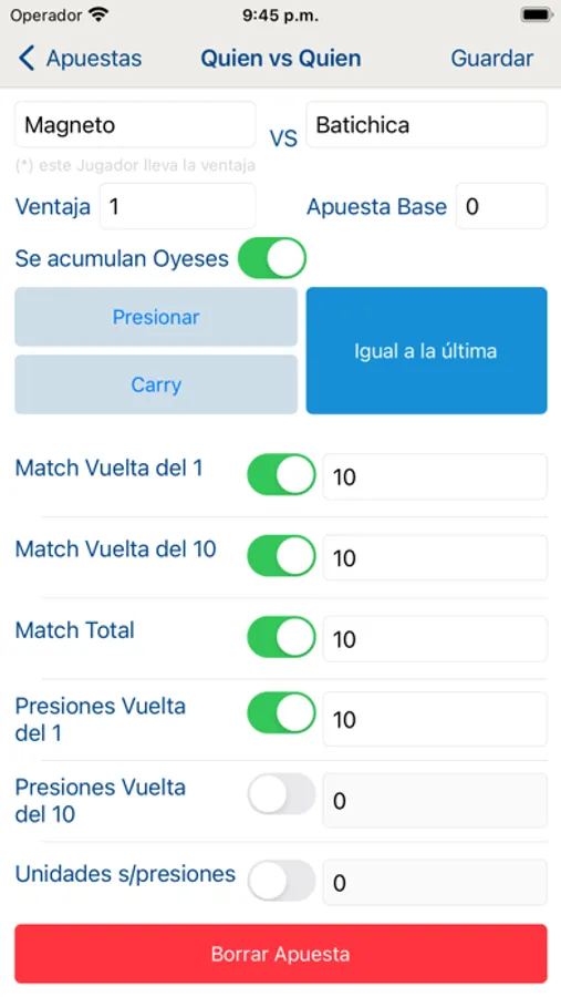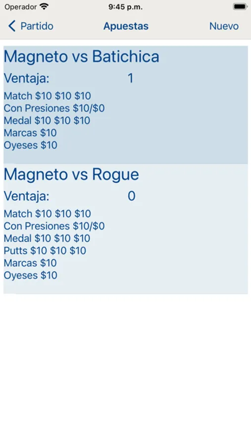 Inicia un partido indicando quién vs quién juega y los tipos de apuesta.