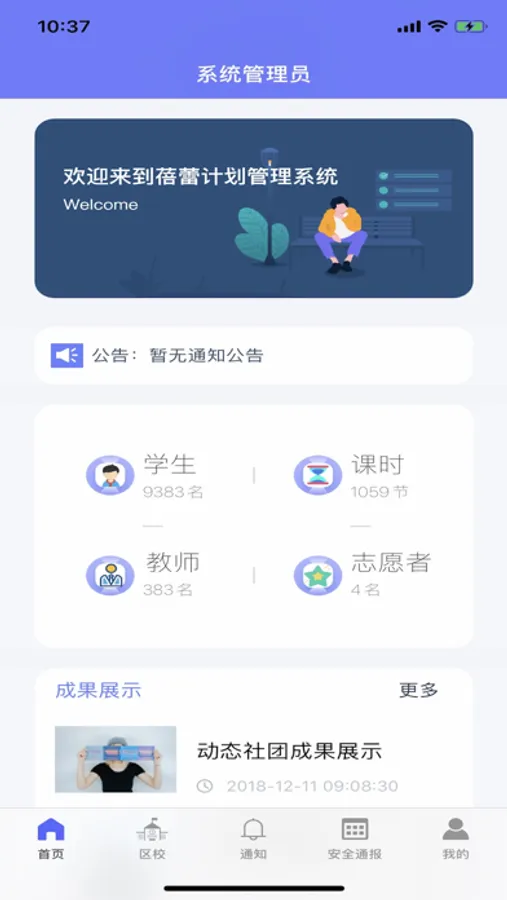 蓓蕾云管理系统包含PC端后台管理系统,管理端APP。为管理者提供最高权限,能够在手机上使用数据统计,研判分析,成果发布,课程查询,个人中心等功能,能够随时监管蓓蕾云推进情况,各校推进信息,完善计划,修改方案。
