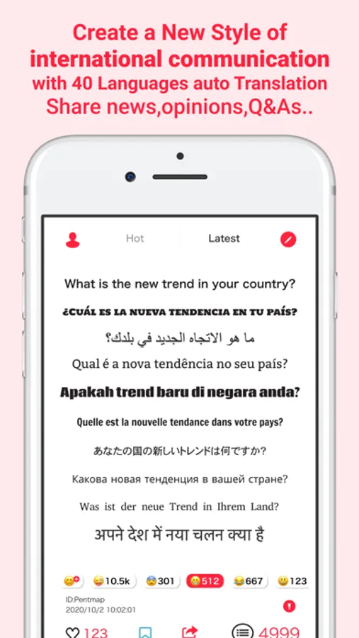 Pentmap is a new style of international communication with auto translation that lets you interact with users and contents from all over the world in your local language for FREE!