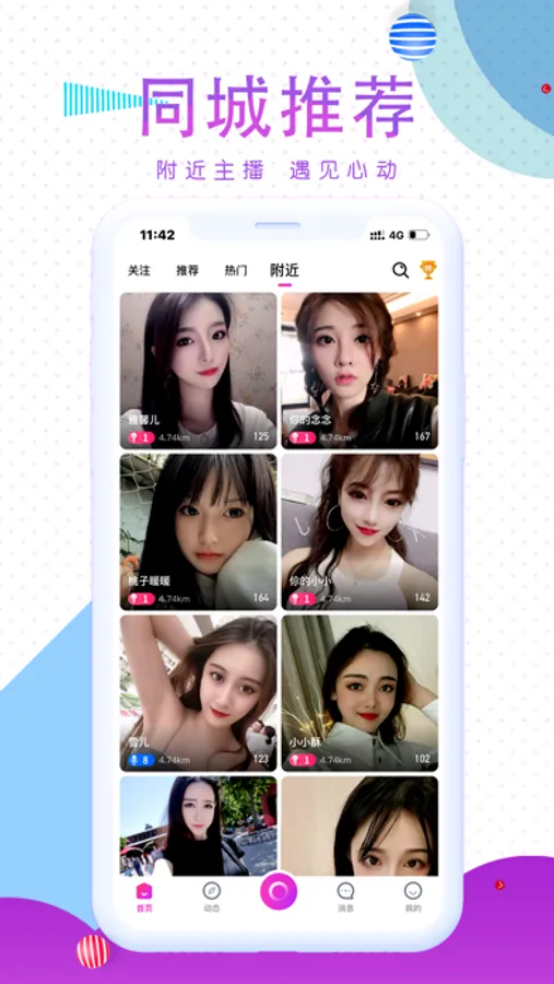 「附近广场」轻松查看附近的人动态、直播,新增喜好标签,遇见兴趣相投的ta;