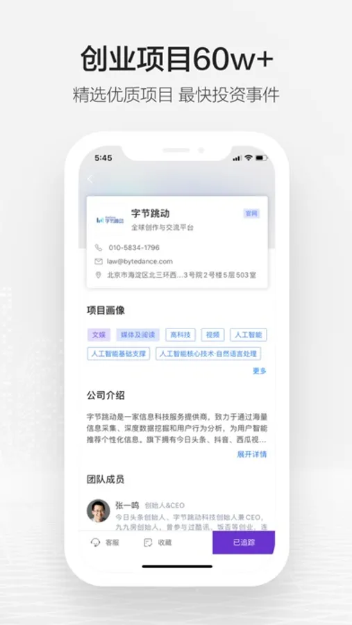 5、追踪:快速追踪项目和机构,实时获取项目和机构相关的事件、资讯、报告等动态。