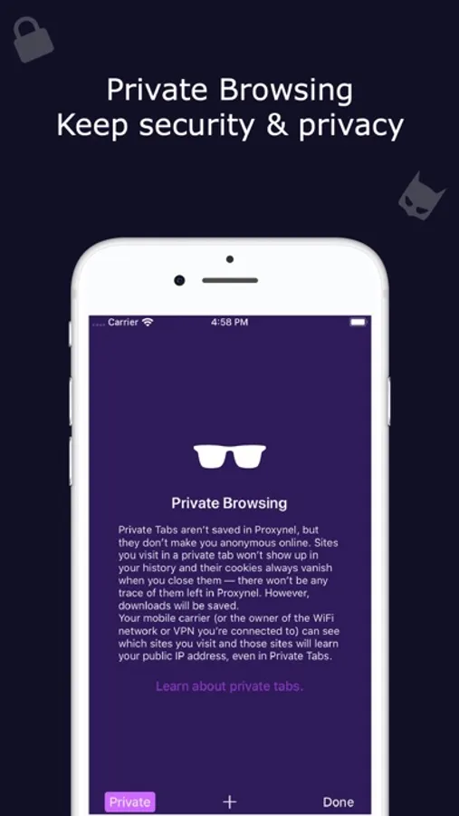 Incognito tab makes your browsing experience perfectly private without leaving any history, cookies, cache, etc.