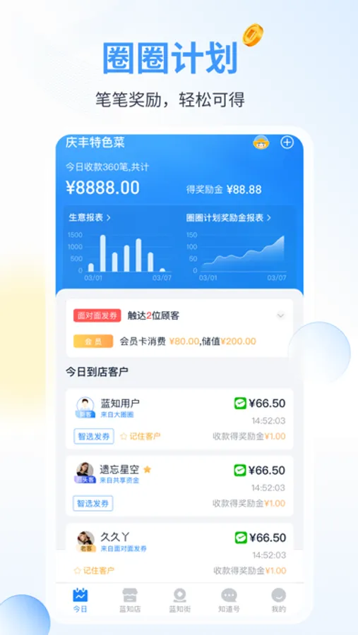 蓝知APP是为商户提供的集二维码收款、客群管理、经营营销等场景化应用的异业联盟平台。改变原有线下门店与客流之间的松散关系,实现不同门店间的客流共享,让门店更好的掌控自己的私域流量。轻松安装,聚力共赢。