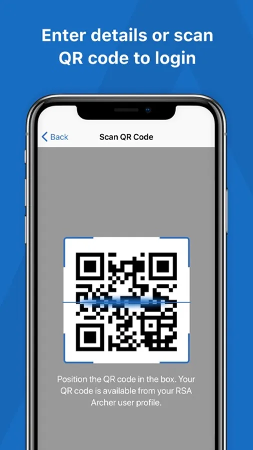 To log in, you will need your organization’s Archer URL, your username and password, and optionally, your organization’s Archer instance and domain. Or, you can use the QR code scanner to automatically populate the Archer URL, Instance, and domain from your Archer user profile. The app also supports authentication via your organization's Single Sign-On using ADFS and SAML 2.0