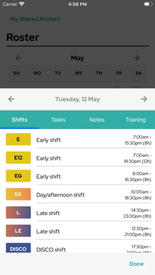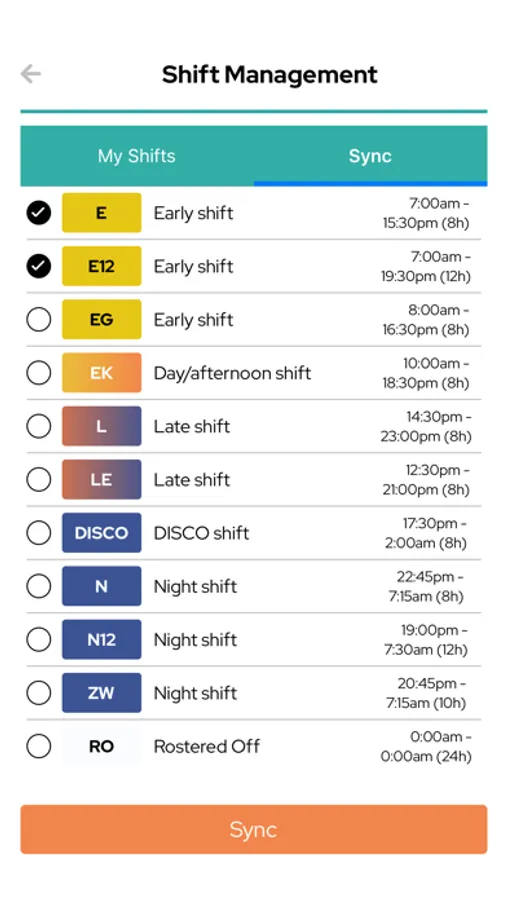 2. Select or add your shifts from the template section