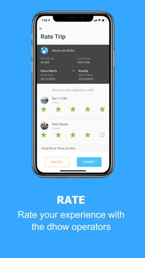Nau is a mobile app-based marketplace connecting you with dhows allowing you to search, book, negotiate, and pay for shipments.