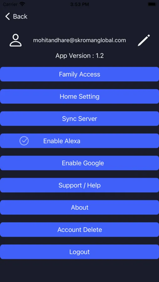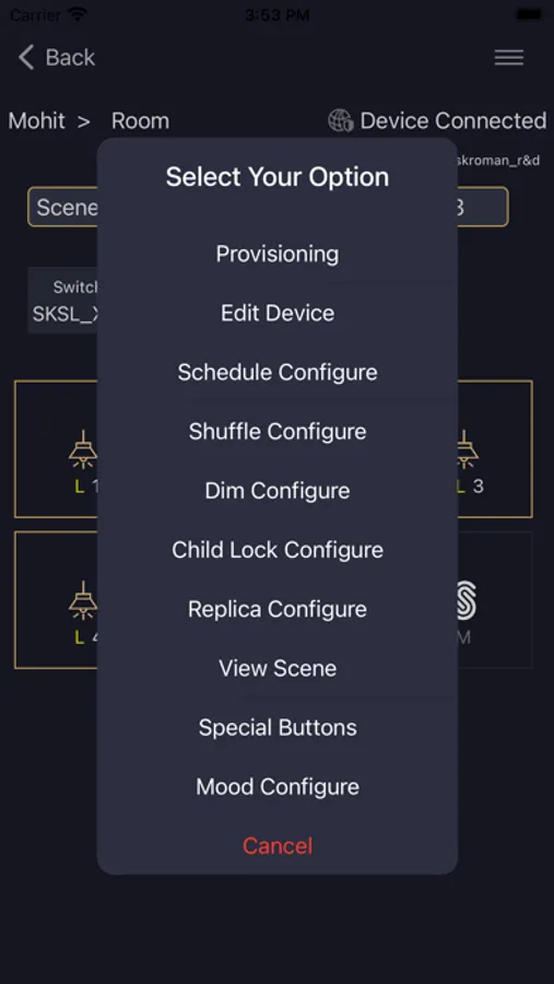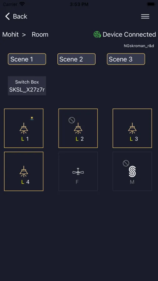 An app to connect and control Skroman devices locally or remotely . With just a requirement of a wifi or mobile network you can control your fans , lights , tv , air-conditioner , geyser and many more from any part of world . Has provision to set up moods for homes , rooms and switch boxes .