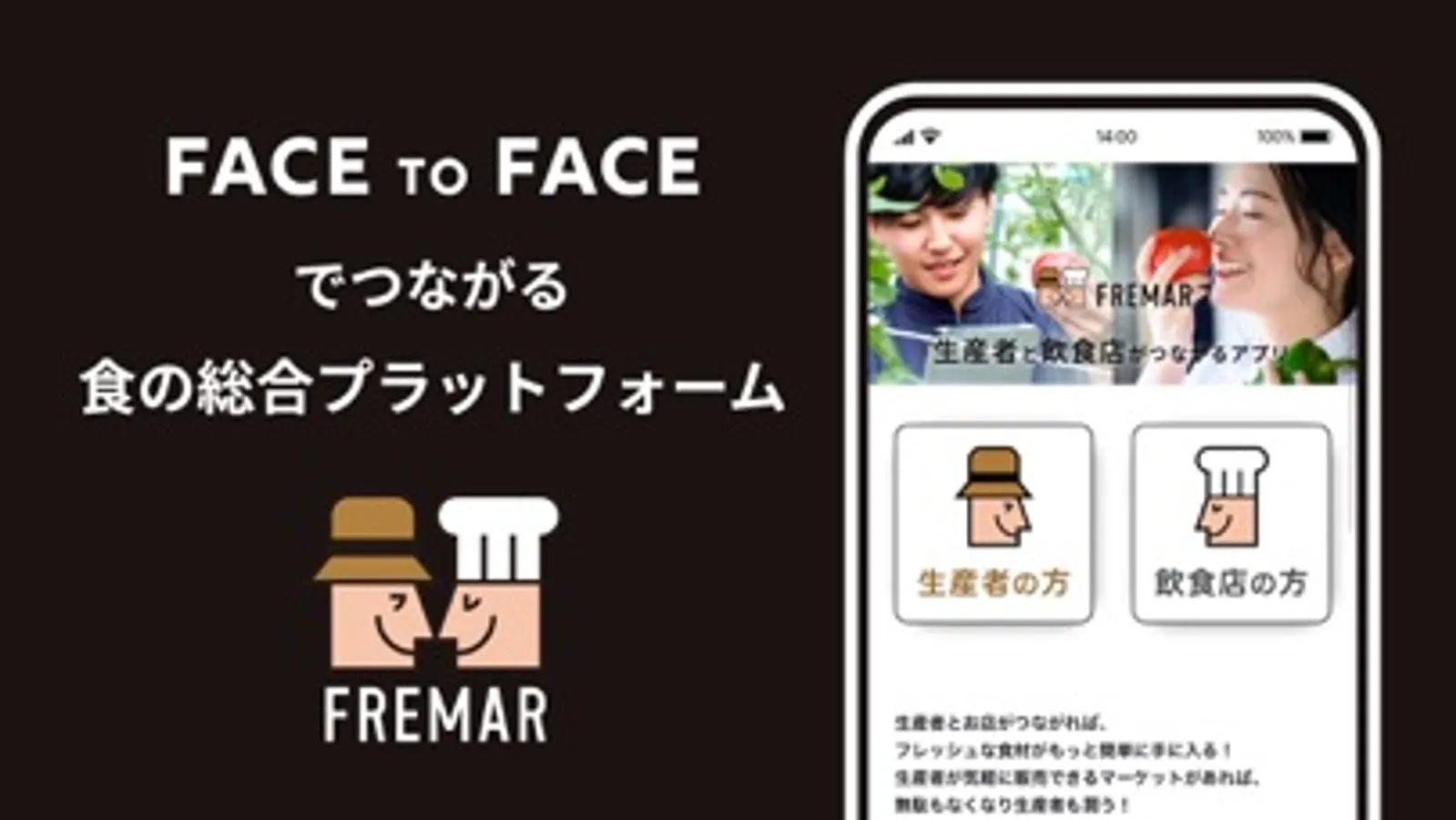 魅力あふれる食材を真剣に育てる生産者と食材にこだわる飲食店がface to faceでつながる食の総合プラットフォーム『フレマル』