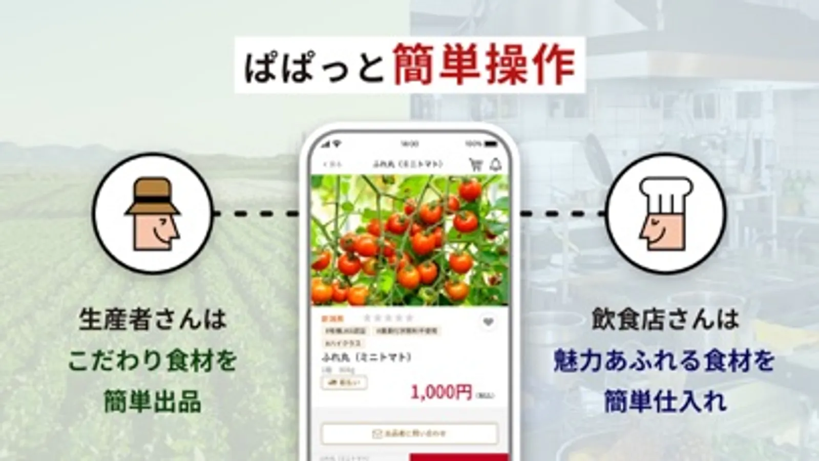 操作も簡単だから、気軽に食材の販売や仕入れをスタートできます。無駄を無くし、SDGsの達成にもつながるのが『フレマル』です。