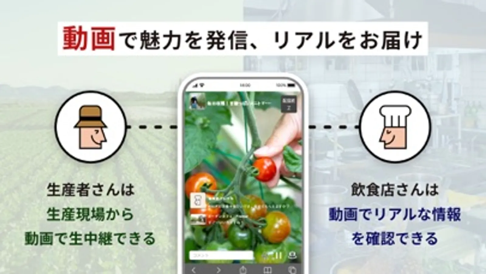 生産者の方は、生産現場から動画で生中継できるライブコマース機能(有料プレミアムプラン限定)などを使い、畑の様子や農産物の情報を自分の言葉で発信することで、食材の魅力を伝えられます。こだわりの栽培方法を付加価値を付けて販売しやすくなります。