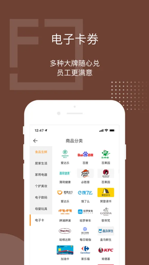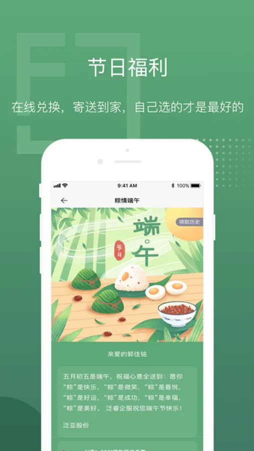 福利兑换:支持企业员工春节福利、三八妇女节福利、端午福利、中秋福利、生日福利、入职周年庆福利、公司周年庆福利及各类节日纪念日福利领取兑换。