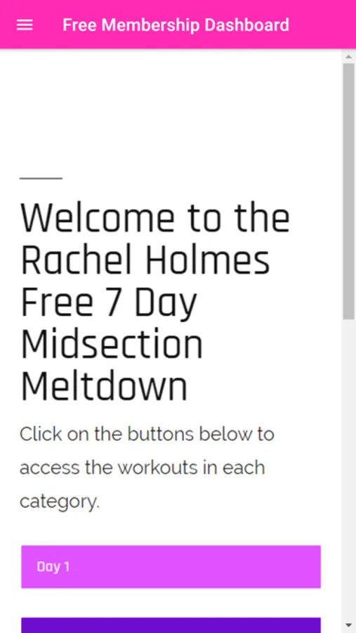 Rachel Holmes Workout & Wellness App contains 10 - 30 minute workouts from Rachel's most popular programmes including Fitness Pilates, Lift Lean, Activation Band Classes and Kick Start with more being added every week. You can also trial the 7 day Midsection Meltdown programme and the Lift Lean Express which are 7 day nutrition and fitness programmes all for free with this beautiful, easy to use app.