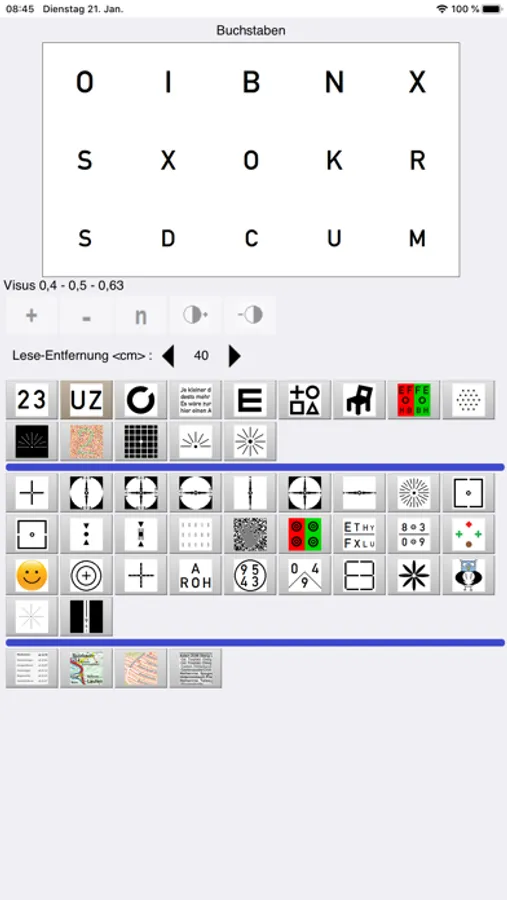 Test charts for testing the near vision, that are displayed on a tablet PC using the VisucatControl app can now be controlled by the examiner using the Visucat-N-Control app on a second device.