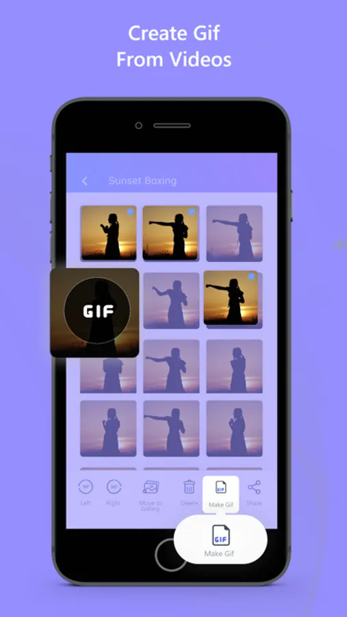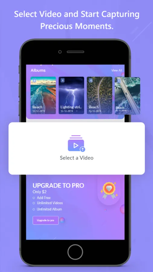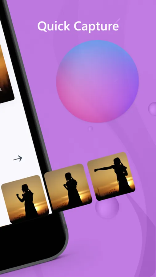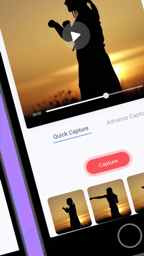 Captures images from video. Videos can be from your mobile phone camera or downloaded from the internet.