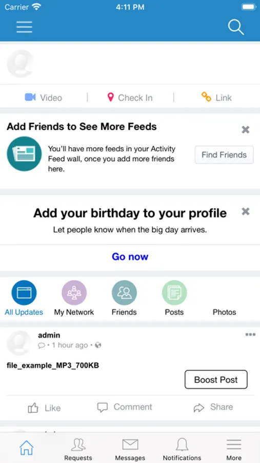 - Enable members to attach links, photos, music and videos. Timestamp, filter, share and customize feed content as desired.