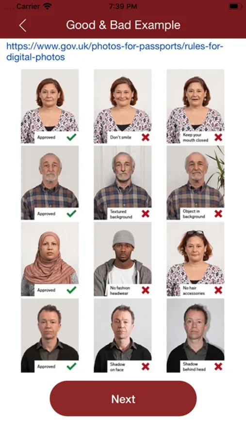 Start by installing the app on your phone and taking your passport photos - making sure to meet the usual requirements. Our service is pre-approved so as long as the criteria is met, your passport photo is guaranteed to be accepted.