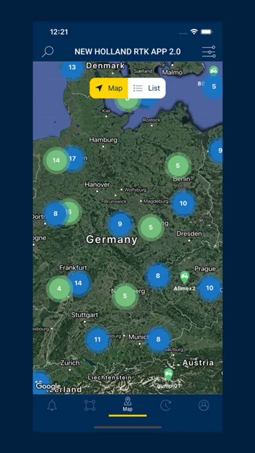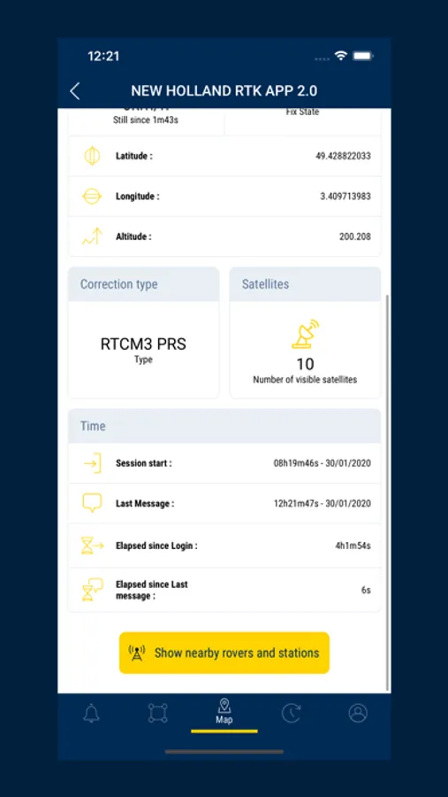 Dedicated to the New Holland owners, this App allows to check the status of all reference stations worldwide. In addition, it allows to check the status of each rover. By clicking on a rover, a detailed window pops-up displaying lot of information of the rover. This helps the user of the App to see the status of the rover, the number of satellites used, how long it has been connected...