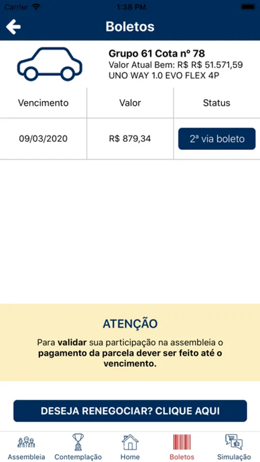 Aplicativo para gestão de sua cota, com acesso a 2ª via de boletos, calendário de assembléias, ofertas de lances, envio de documentos, simulações e muito mais.