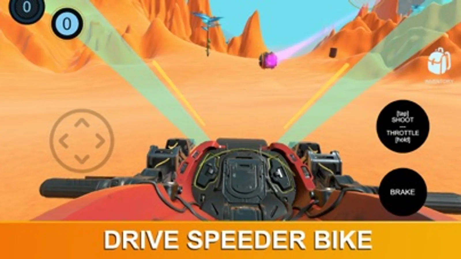 - use the EVA motorcycle to explore the plains and canyons of a desolate planet