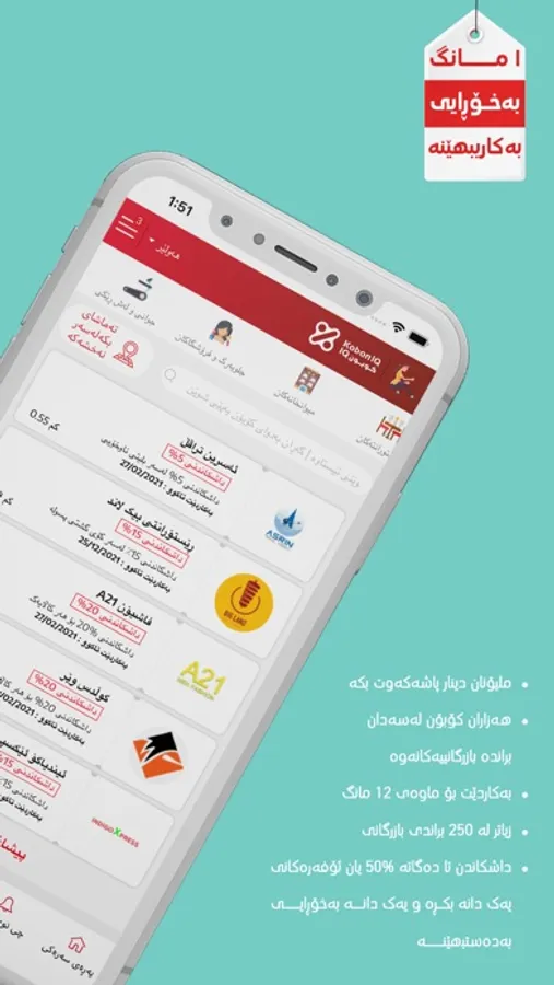 KobonIQ offers upto 50% or buy 1 get 1 free discount offers from the best brands in Kurdistan. KobonIQ application is simple and easy to use.