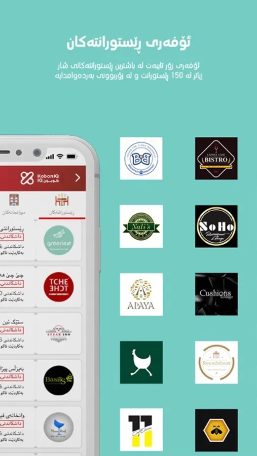 KobonIQ یەکەم و تەنها ئەپڵیکەیشنە لە عێراق. تیمێکی پسپۆڕمان هەڵدەستن دەستنیشانکردنی بەناوبانگترین و باشترین شوێنە بازرگانییەکان لە شارەکان و دانوستانیان لەگەڵ دەکەن بۆ بەدەستهێنانی زۆرترین مامەڵەی ئابووری و تایبەت - تەنها بۆ بەشداربووانی kobonIQ.