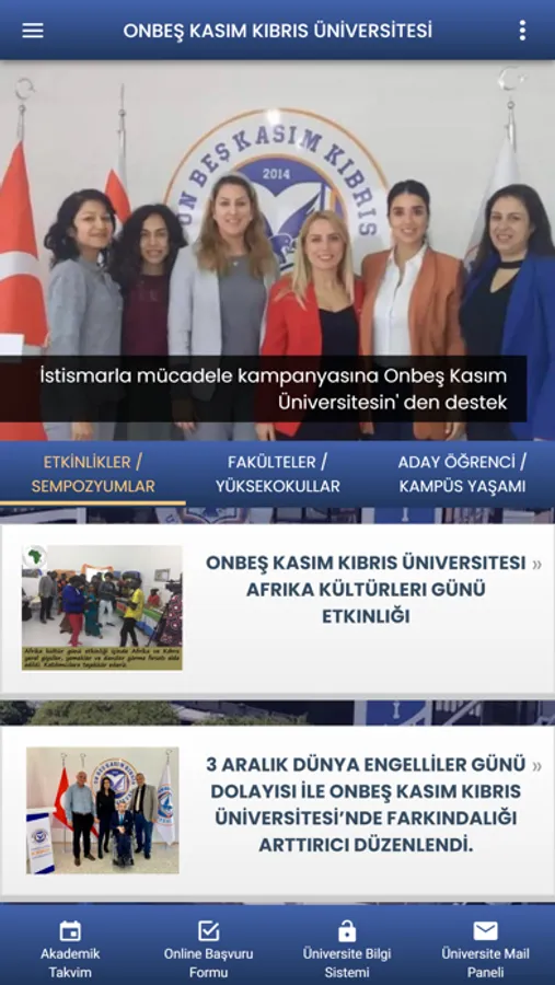 Ayrıca, Onbeş Kasım Kıbrıs Üniversitesi, KKTC'nin uluslararası platformda ve kültür dünyasında saygın bir yer almasını teminen; uluslararası bilimsel faaliyetler düzenlemeyi ve bu faaliyetlere katılmayı önde gelen görevi saymaktadır.
