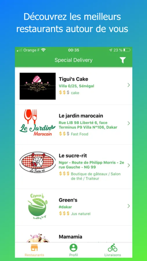 Quel que soit le restaurant sollicité, le prix de la livraison est de 500 FCFA