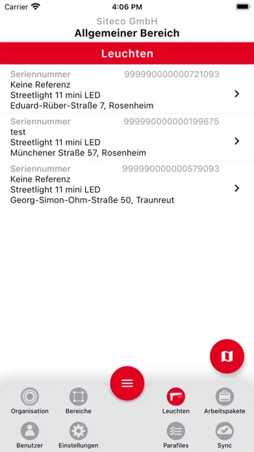 Managen: Zusätzlich können Kunden mit der App Leuchten inventarisieren und ein digitales Leuchtenkataster anlegen, inklusive Geo-Position der einzelnen Leuchten.