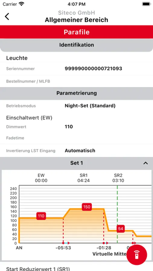 Einstellen: In der LumIdent App können Konfigurationen komfortabel erstellt, verwaltet und auf erfasste Leuchten übertragen werden. Ein Tool für alle SITECO-Leuchten, unabhängig vom EVG-Hersteller. Das vereinfacht das Handling bei der Inbetriebnahme und reduziert die Zahl der notwendigen Parametrier-Tools im Außeneinsatz.