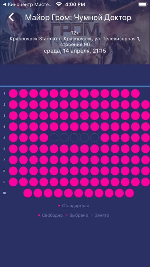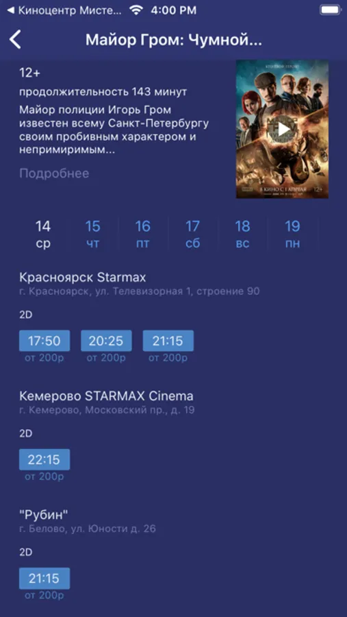 В приложении «STARMAXcinema» вы можете приобретать билеты на любой киносеанс в кинотеатре STARMAXcinema г.Кемерово и кинотеатр Рубин г.Белово. Вы так же можете приобрести продукцию кинобара. При покупке билетов или продукции кинобара через приложение вам будут начисляться бонусы, которые можно будет использовать при следующей покупке билетов или продукции кинобара.