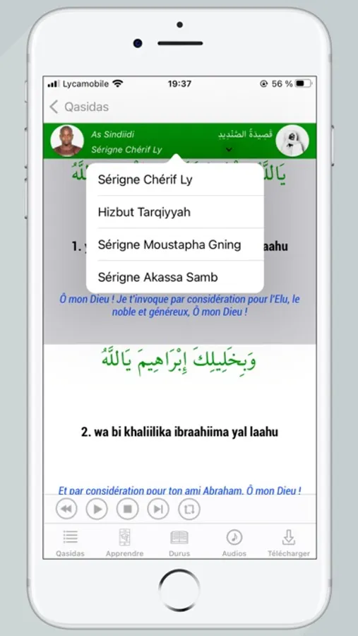 QasidasApp est un didacticiel qui permet d'apprendre les poèmes écrits par Cheikh Ahmadou Bamba, le fondateur du mouridisme.