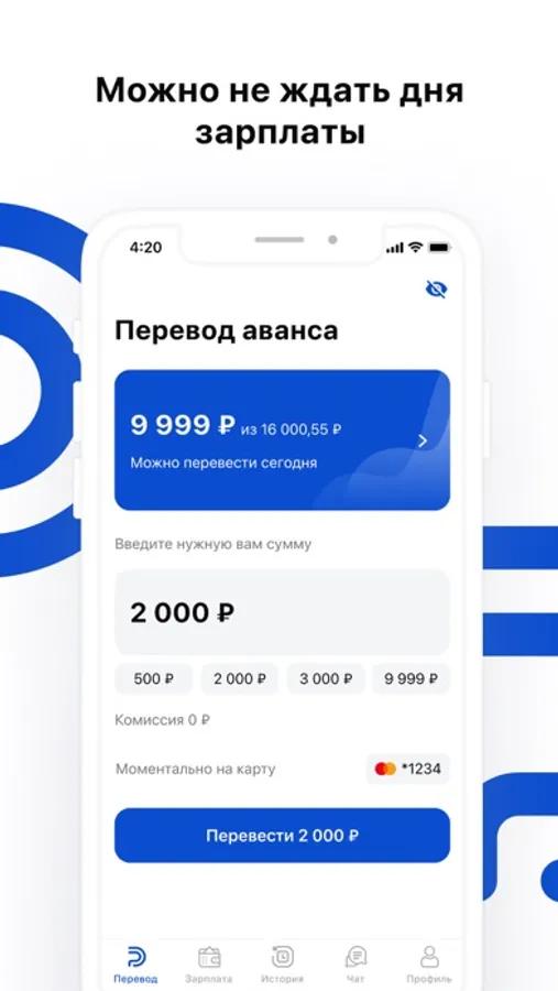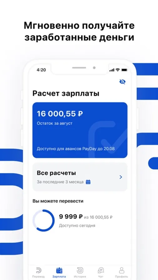 - Позволяет не ждать дня выплаты ЗП, а получить ее сегодня.