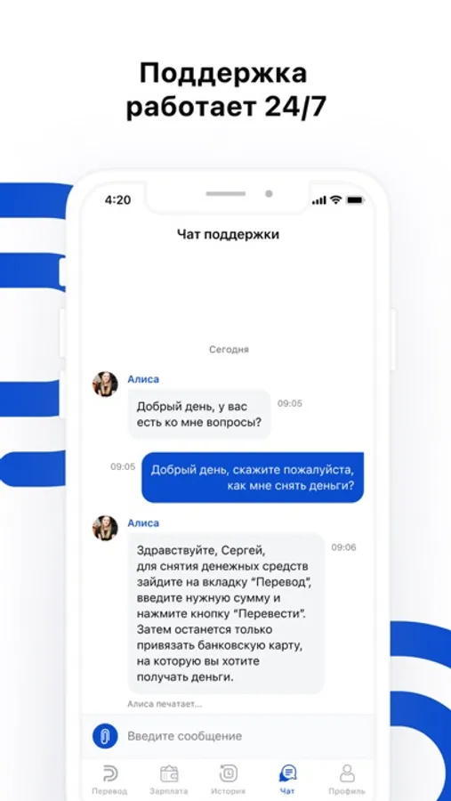 Мы сделали очень простой и полезный чат, в котором вы сможете задать любой вопрос и получить помощь при работе в приложении.