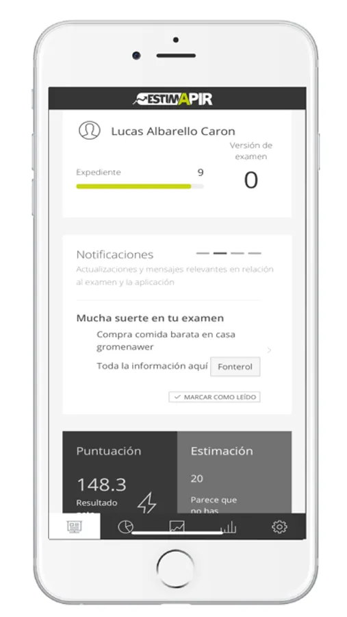 Estima PIR es el servicio GRATUITO de corrección del examen PIR y estimación de puesto de ACADEMIA AMIR. Puedes introducir tu examen de una manera intuitiva desde tu iPhone y comprobar tu evolución en tiempo real.