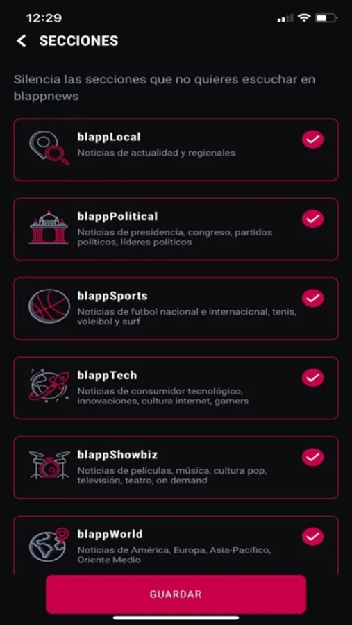 En blapp, podrás elegir las secciones y las fuentes que más se adapten a sus gustos. Puedes escuchar noticias sobre Economía, Política, Mundo, Entretenimiento y más.