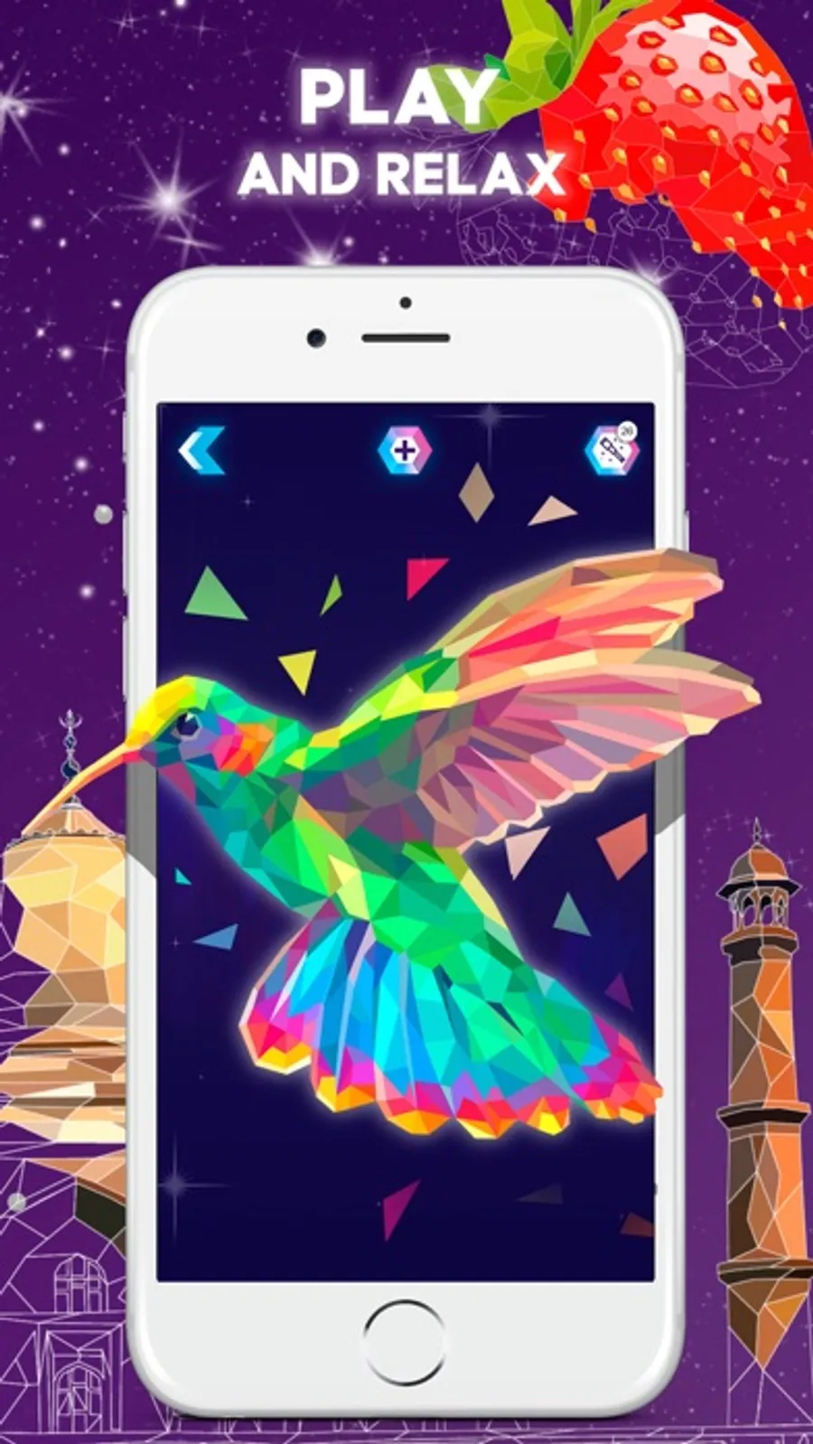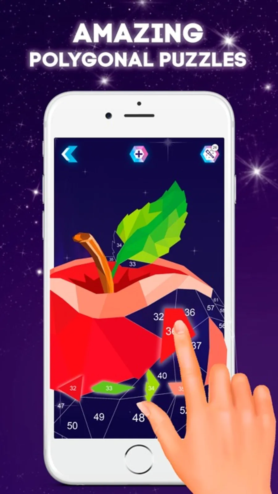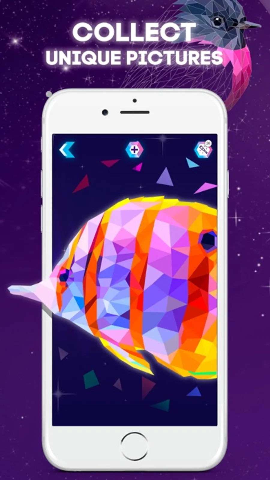 Use your finger to connect the pieces of polygonal shapes until you discover the hidden picture. Collect them all in your gallery!