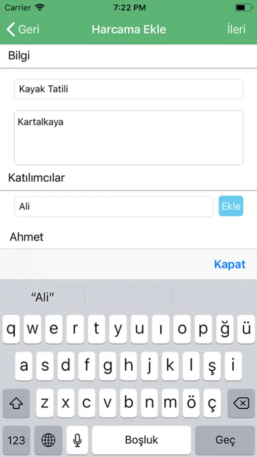 İstediğiniz kadar arkadaş ekleyebilir harcama ekleyebilir ve silebilirsiniz.