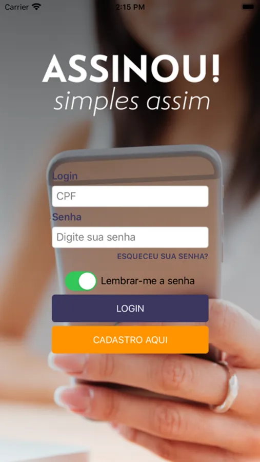 Baixe o APP ASSINOU, preencha o cadastro, crie sua assinatura e já experimente como é fácil assinar digitalmente. Em minutos você já pode assinar com seus amigos, clientes, fornecedores e demais pessoas.
