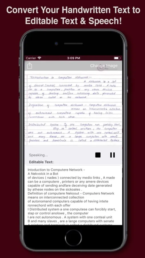You can recognize handwritten text notes, list or any form of text from paper to editable text and speech it in your device in just one click.