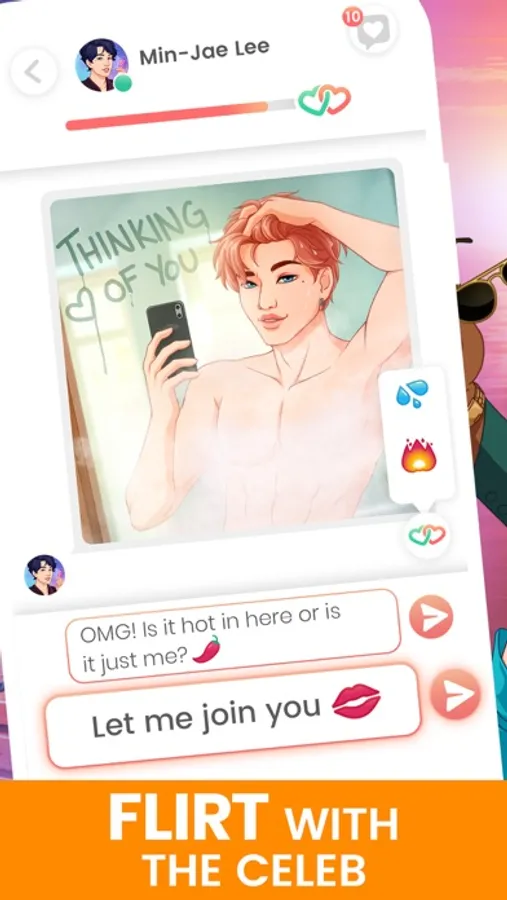 Get to know your potential suitors! Learn about their lives and experience their unique stories. Collect steamy selfies, send flirty emojis and make choices that influence your interactions and the outcome of the story, and who knows, maybe they’ll want to meet you for a date!