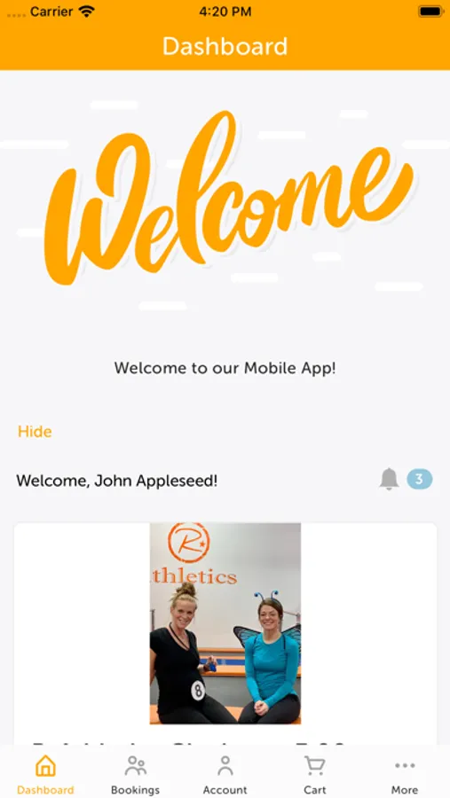 The R-Athletics mobile app allows you to sign up for classes, special events/camps, and schedule make-ups.